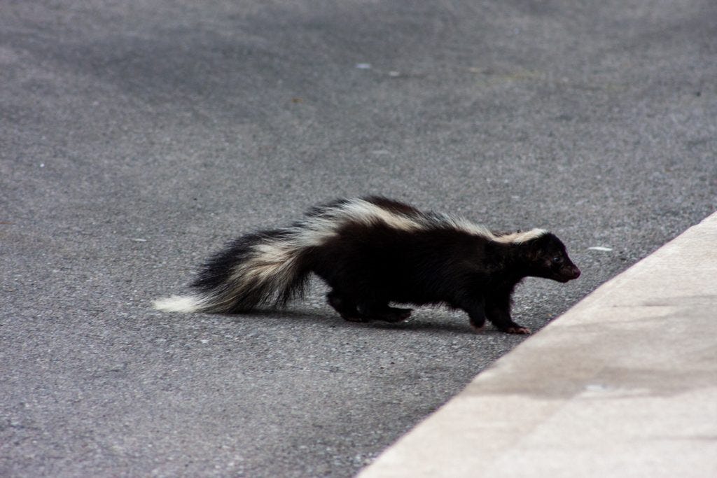 This little skunk was out and about - I think just trying to find the way back to the burrow, the other morning on my walk to work. I was able to notify someone with a dog that the skunk was on it's way towards them, which was good. But the skunk had a run in with a goose (below) after, thankfully it…
